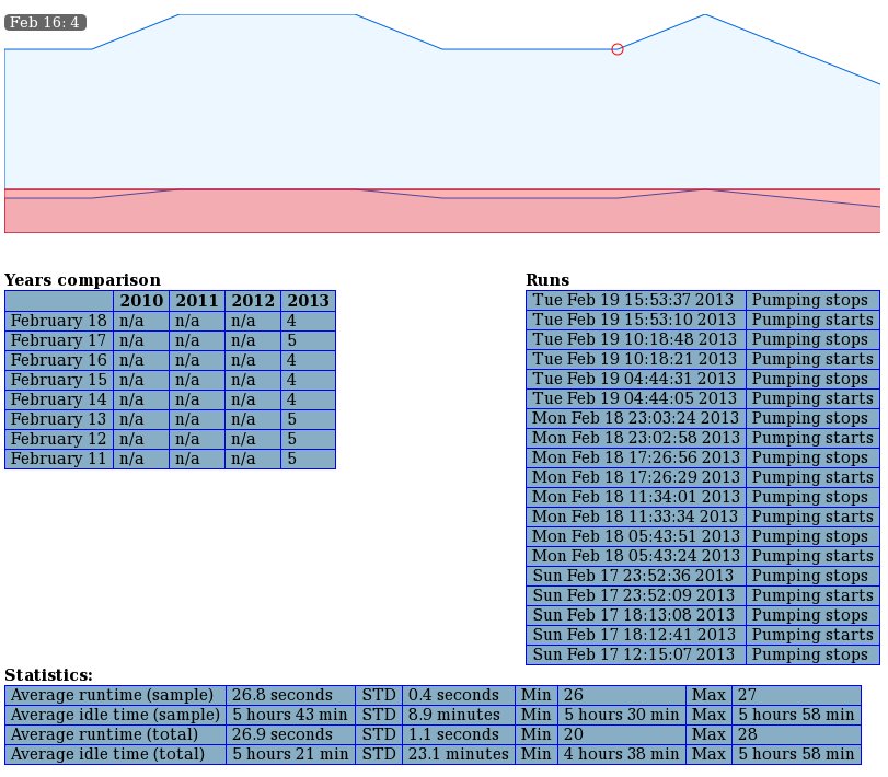 And here is what I do with the data. I know it is a bit overkill to make those statistics but it's always fun to observe a trend with any data sets. This is a snapshot of my status page on my intranet site.